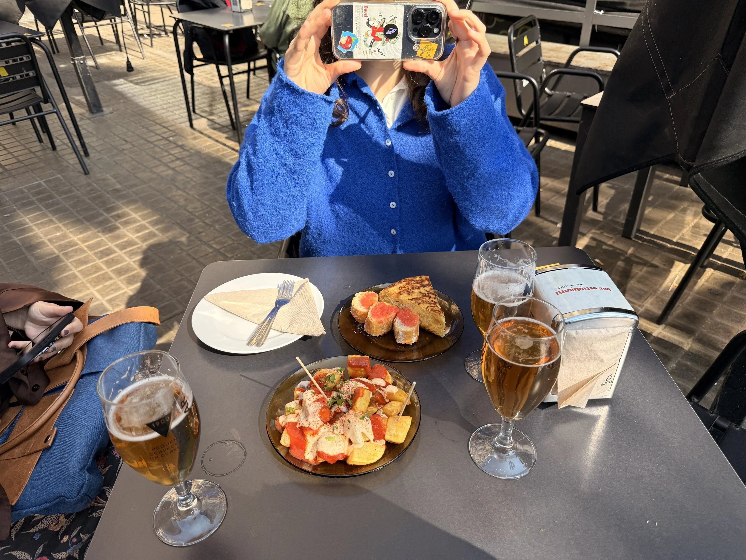on friday we had our catalán exam (molttt bé!) and wrapped up our academic spanish class, and when I got homeeee Roman was j chillin in the room after having had a delightful solo day in the cityy. we got some tapas at the cute strip right behind Beyoo and had some DELISH croquettes and patatas bravas ofc. later we met up with awesome friend Caroline and new friends Sonia and Ayla for some wine & sangria at a bar right near Poble Sec, and vibes were righttttt. chill night, went home, and started roman’s favorite…. EAT PRAY LOVE (2010)😍
